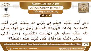 فهل تثبت هذه الصفة؟ لا لا ما يثبت لله الهرولة بمعنى بمعناها المعروف وانما يثبت ما جاء في الحديث ان الله جل وعلا يقبل يتقبل عبده المؤمن اذا اقبل عليه الله جل وعلا - 00:00:20ضَ