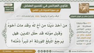 [408- 4717] هل يبرأ المدين إذا حلله الدائن في مرض موته؟ - الشيخ صالح الفوزان