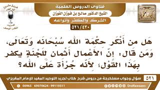 [430 -521] هل من أنكر حكمة الله سبحانه وقال: إن الأعمال أثمان للجنة يكفر بهذا القول؟ - صالح الفوزان