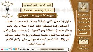 وخليفة واكمل الجماعة صلاتهم وجلسوا منتظرين للامام ليكمل صلاته هل يقف الثالث مع الامام ام يجلس حتى يكمل الامام ثم يقوم ليكمل اذا وقعت هذه وهي نادرة بان يتولى الامامة - 00:00:17ضَ