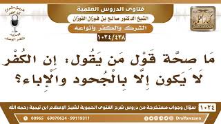[438 -1024] ما صحة قول من يقول: إن الكفر لا يكون إلا بالجحود والإباء؟ - الشيخ صالح الفوزان