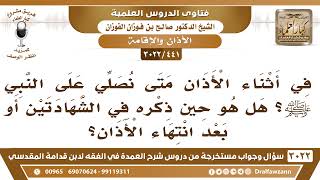 [441 -3022] في أثناء الأذان متى نصلي على النبي ﷺ؟ هل هو حين ذكره في الشهادتين أو بعد انتهاء الأذان؟