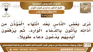 [445 -3022] نرى بعض الناس بعد انتهاء الأذان يأتون بالدعاء الوارد، ثم يرفعون أيديهم يدعون دعاء طويلا!