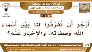 يقول فضيلة الشيخ وفقكم الله ارجو ان تفرقوا لنا بين الاسماء والصفات والاخبار. ها ارجو ان تفرقوا لنا بين اسماء الله وصفاته والاخبار عنه كل ما جاء في الاسماء والصفات وهو من باب الاخبار عن الله جل وعلا. كله من باب الاخبار - 00:00:00ضَ