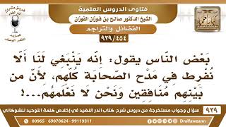 [454 -939] البعض يقول: ينبغي لنا ألا نفرط في مدح الصحابة كلهم، لأن من بينهم منافقين ونحن لا نعلمهم!