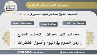 46 - مجالس شهر رمضان - زمن الصوم في اليوم وأصول المفطرات - الشيخ سعد بن شايم الحضيري
