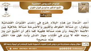رحمه الله لا يرى في اقتناء جهاز الدش بأسا. فهل هذا النقل عنه صحيح؟ هذا كذب كله كذب وافتراء الطواف بالقبور ما فيه اختلاف وليس فقهيا وانما هو عبادة من العقيدة وليس هو من الفقه - 00:00:20ضَ