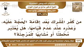 فضيلة الشيخ وفقكم الله يقول من كفر المشرك بعد اقامة الحجة عليه وعذره عند عدم قيامها من من كفر المشرك بعد اقامة الحجة عليه. هم. وعذره عند عدم عند عدم قيامها - 00:00:00ضَ
