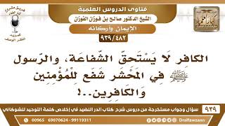فضيلة الشيخ وفقكم الله الكافر لا يستحق الشفاعة والرسول صلى الله عليه وسلم في المحشر شفع للمؤمنين والكافرين ببدء الحساب ما شفع لهم بالخروج من النار شفع لهم في الفصل بينهم فقط - 00:00:00ضَ