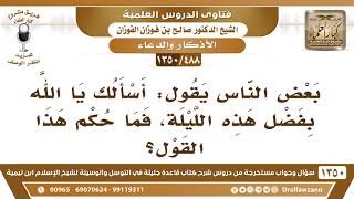 [488 /1350] بعض الناس يقول: أسألك يا الله بفضل هذه الليلة، فما حكم هذا القول؟ الشيخ صالح الفوزان