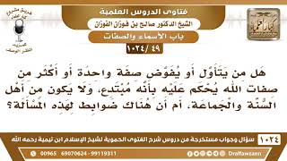 يقول فضيلة الشيخ وفقكم الله هل من يتأول او يفوظ صفة واحدة او اكثر؟ نعم هل من يتأول او يفوظ صفة واحدة او اكثر من صفات الله يحكم عليه بانه مبتدع. ولا يكون من اهل السنة والجماعة ام انهن ام ان هناك - 00:00:00ضَ