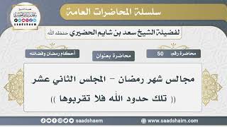 50 - مجالس شهر رمضان - تلك حدود الله فلا تقربوها - الشيخ سعد بن شايم الحضيري
