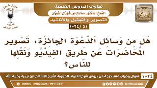 يقول فضيلة الشيخ وفقكم الله هل من وسائل الدعوة الجائزة تصوير المحاضرات عن طريق الفيديو ونقلها للناس؟ هذا تحريم التصوير فلا نجعل وسيلة محرمة للدعوة. ما نجعل للدعوة وسيلة محرمة. لان الرسول صلى الله عليه وسلم حرم - 00:00:00ضَ