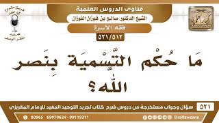 يقول فضيلة الشيخ وفقكم الله ما حكم التسمية بنصر الله مم ما حكم التسمية بنصر الله بعض العلماء اسمه نصر الله من الحنابلة ابن نصر الله نعم ما في معنى - 00:00:00ضَ