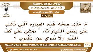 يقول فضيلة الشيخ وفقكم الله وما مدى صحة هذه العبارة التي تكتب على بعض السيارات نمشي على كف القدر ولا ندري عن المكتوب نف القدر القدر له كف ولكي تزيد في الكلام - 00:00:00ضَ