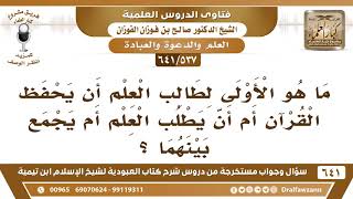 [537 /641] ما هو الأولى لطالب العلم هل يحفظ القرآن أم يطلب العلم أم يجمع بينهما؟ الشيخ صالح الفوزان