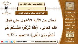 5566- معنى التزكية في قوله: ﴿فلا تزكوا أنفسكم هو أعلم بمن اتقى﴾ - الشيخ صالح الفوزان