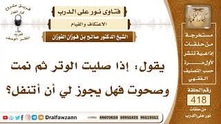 احسن الله اليكم. يقول اذا صليت الوتر ثم نمت وصحوت هل يجوز لي ان اتنفل؟ نعم يجوز انك تتنفل بعد بعد الوتر. يجوز انك تتنفل بعد الوتر لان ان النبي صلى الله عليه وسلم كان يصلي بعد الوتر. نعم - 00:00:00ضَ