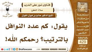 احسن الله اليكم. يقول كم عدد النوافل بالترتيب رحمكم الله؟ النوافل تنقسم الى قسمين. النوافل مطلقة لا تتقيد بوقت ولا وهذه تصلى في غير اوقات النعيم الليل او نهار يصلي ما تيسر له من النوافل من غير ارتباط بوقت او عدد ما عدا اوقات - 00:00:00ضَ