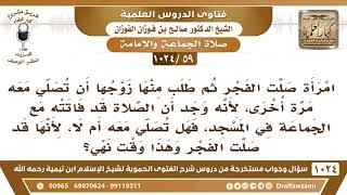 فضيلة الشيخ وفقكم الله امرأة صلت الفجر ثم طلب منها زوجها ان تصلي معه مرة اخرى لانه وجد ان الصلاة قد فاتته مع الجماعة في المسجد فهل تصلي معه ام لا؟ لانها قد صلت الفجر وهذا وقت نهي. يجوز للانسان الذي صلى - 00:00:00ضَ