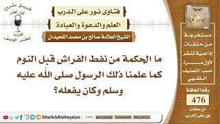 احسن الله اليكم. ما الحكمة من نفض الفراش قبل النوم؟ كما علمنا ذلك الرسول صلى الله عليه وسلم وكان يفعله هو لوقاية النفس خشية ان يدب على الفراش تشرق السامة وقاتلة - 00:00:00ضَ