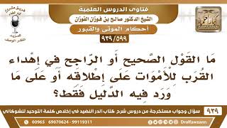 [599 -939] ما القول الصحيح أو الراجح في إهداء القرب للأموات على إطلاقه أو على ما ورد فيه الدليل فقط؟
