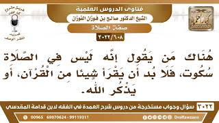 فضيلة الشيخ وفقكم الله يقول هناك من يقول انه ليس في الصلاة سكوت. فلا بد ان يقرأ شيئا من القرآن. او يذكر الله الصلاة سكوت. ليس للصلاة سكوت. يشغله بذكر الله. يشغله بذكر الله. من قال ان الصلاة فيها سكوت؟ الا السكتات - 00:00:00ضَ