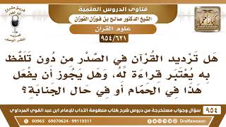 احسن الله اليكم صاحب الفضيلة وهذا السائل يقول هل ترديد القرآن في الصدر من دون تلفظ به؟ يعتبر قراءة له؟ وهل يجوز ان يفعل هذا في الحمام او في حال الجنابة - 00:00:00ضَ