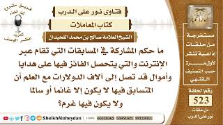 احسن الله اليكم. ما حكم المشاركة في المسابقات التي تقام عبر الانترنت والتي يتحصل الفائز فيها على هدايا واموال قد تصل الى الاف الدولارات مع العلم ان المتسابق فيها لا يكون - 00:00:00ضَ