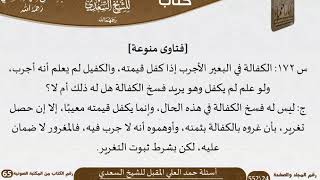 اثنين وسبعين ومئة الكفالة في البعير الاجرب اذا كفل قيمته. والكفيل لم يعلم انه اجرب. ولو علم لم يكفل وهو يريد فسخ الكفالة هل له ذلك ام لا؟ جيم. ليس له فسخ الكفالة في هذه الحال. وانما - 00:11:34ضَ