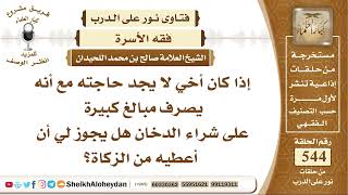 احسن الله اليكم اخر سؤال للمستمع في هذه الحلقة يقول اذا كان اخي لا يجد حاجته مع انه يصرف مبالغ كبيرة على شراء الدخان هل يجوز لي ان اعطيه من الزكاة - 00:00:00ضَ