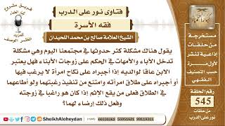 فهذا سؤال من المستمع ميم خاء ميم سوداني مقيم بالرياض يقول هناك مشكلة كثر حدوثها في مجتمعنا اليوم وهي مشكلة تدخل الاباء والامهات في الحكم على زوجات الابناء فهل يعتبر الابن عاقا لوالديه اذا اجبراه على نكاح امرأة لا يرغب فيها - 00:00:00ضَ