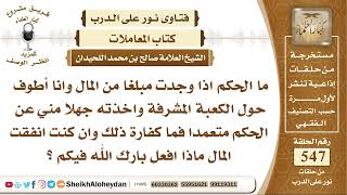 يقول في رسالته ما الحكم اذا وجدت مبلغا من المال وانا اطوف اه حول الكعبة المشرفة واخذته جهلا مني عن الحكم متعمدا فما كفارة ذلك وان كنت انفقت المال ماذا افعل؟ بارك الله فيكم - 00:00:00ضَ