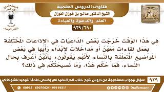 فظيلة الشيخ وفقكم الله يقول في هذا الوقت خرجت بعض الداعيات في الاذاعات المختلفة بعمل لقاءات معهن او مداخلات في ابداء رأيها في بعض المواضيع المتعلقة بالنساء لانهم يقولون انهن اعرف بحال النساء. يقول فما حكم هذا؟ وما نصيحتكم في ذلك - 00:00:00ضَ