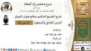 71 من 83 / شرح مختصر زاد المعاد / غزوة خيبر / صالح الفوزان / السيرة / كبار العلماء