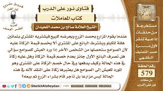 يقول عندما يقوم المزارع بحصد الزرع ويعرضه للبيع فيشتريه المشتري بثمانين هللة للكيلو ويشترط البائع على المشتري الا يخصم قيمة الزكاة عليه. لان الصوامع ستحصلها من الشخص الاخر اذا ورد العيش للصوامع - 00:00:00ضَ