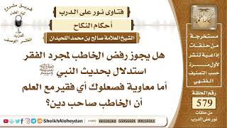 قل هل يجوز رفض الخاطب لمجرد الفقر؟ استدلالا بحديث النبي صلى الله عليه وسلم. اما معاوية فصعلوك اي فقير. مع العلم ان الخاطبة صاحب دين لا حرج خاطب اذا خطب - 00:00:00ضَ