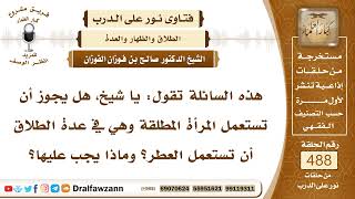 هذه السائلة تقول يا شيخ هل يجوز ان تستعمل المرأة المطلقة وهي في عدة طلاق تستعمل العطر؟ وماذا يجب عليها؟ اه المرأة طه المطلقة اذا كانت رجعية فانها حكمها حكم الزوجة. تتطيب وتتجمل عند زوجها لعله ان يراجعها - 00:00:00ضَ