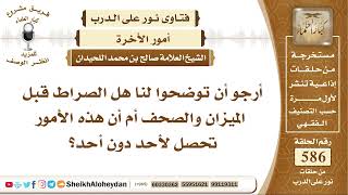 في هذه الحلقة تسأل وتقول ارجو توضيح او ارجو ان توضحوا لنا هل الصراط قبل الميزان والصحف ام ان هذه الامور تحصل لاحد دون احد بسم الله الرحمن الرحيم الحمد لله - 00:00:00ضَ