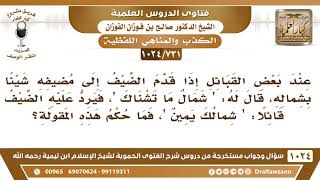 شمالك يمين لا شمال المخلوق شمال يكره الاكل بالشمال والاخذ والاعطاء بالشمال الا لمن كانت يمينه مختلة ولا يستطيع يستعملها فانه يستعمل الشمال. اما من كانت يمينه صحيحة فلا يستبدلها بالشمال. رأى النبي صلى الله عليه وسلم رجلا يأكل بشماله فقال له كل بيمينك. قال لا استطيع - 00:00:20ضَ