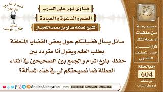 سائل يسأل فضيلتكم حول بعض القضايا المتعلقة بطلب العلم يقول انا متردد بين حفظ بلوغ المرام والجمع بين الصحيحين في اثناء العطلة فما نصيحتكم لي في هذه المسألة حفظ بلوغ المرام - 00:00:00ضَ