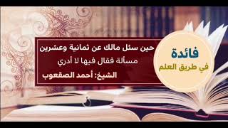قال لا ادري. فقال الرجل مستغربا يا ابا عبد الله ايش اقول للناس لما ارجع؟ اتيت الى امام دار الهجرة فقال هذا الكلام قال قل لهم سألت الامام ما قال قل لهم سألت مالكا؟ فقال لا ادري - 00:00:17ضَ