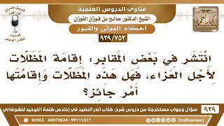 [753 -939] انتشر في بعض المقابر: إقامة المظلات لأجل العزاء، فهل هذه المظلات وإقامتها أمر جائز؟