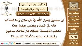 يقول في هذه الحلقة لي صديق يقول الله في كل مكان واذا قلنا له الله في السماء يغضب ويقول هذا مذهب المجسمة المعطلة. هل كلامه صحيح وكيف نرد عليه بالادلة الشرعية - 00:00:00ضَ