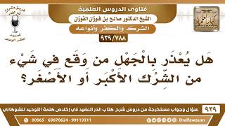 [788 -939] هل يعذر بالجهل من وقع في شيء من الشرك الأكبر أو الأصغر؟ - الشيخ صالح الفوزان