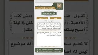 اه هذان سؤالان من الاخت المستمعة فعين من الخرج. نعم. اه سؤالها الاول تقول لقد قرأت حديثا في بعض كتب الادب ان من قرأ سورة الدخان في ليلة اصبح يستغفر له سبعون الف ملك. فما مدى صحة هذا الحديث؟ لا نعلم صحته - 00:00:00ضَ