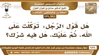 [791 -939] هل قول الرجل: توكلت على الله، ثم عليك، هل فيه شرك؟ - الشيخ صالح الفوزان