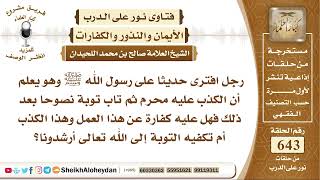 سؤاله الثاني يقول فيه رجل افترى حديثا على رسول الله صلى الله عليه وسلم وهو يعلم ان الكذب عليه محرم ثم تاب توبة نصوحا بعد ذلك هل عليه كفارة عن هذا العمل وهذا الكذب ام تكفيه التوبة الى الله تعالى؟ ارشدونا مأجورين - 00:00:00ضَ