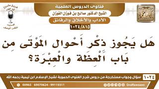 يقول فضيلة الشيخ وفقكم الله هل يجوز ذكر احوال الموتى من باب العظة والعبرة؟ لا ما يجوز ذكر هذا ان هذا فيه اغتياب للاموات في اغتياب للاموات وفيه ترويع للناس فلا - 00:00:00ضَ