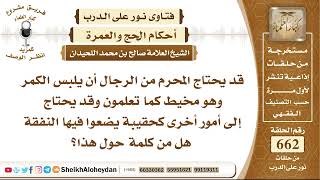 صالح قد يحتاج المحرم من الرجال ان يلبس القمر وهو مخيط كما تعلمون. وقد يحتاج الى امور اخرى كحقيبة يضع فيها النفقة. هل من كلمة حول هذا جزاكم لا حرج على المحرم - 00:00:00ضَ
